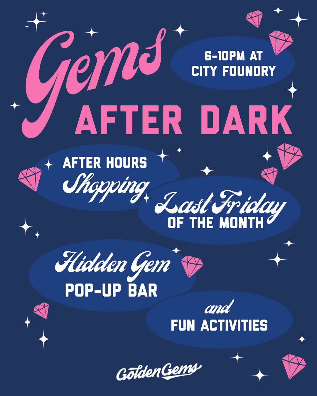 Join Golden Gems for after-hours shopping, Hidden Gem pop-up, FREE friendship bracelet making bar, astrology & card readings and they are collecting donations each month.