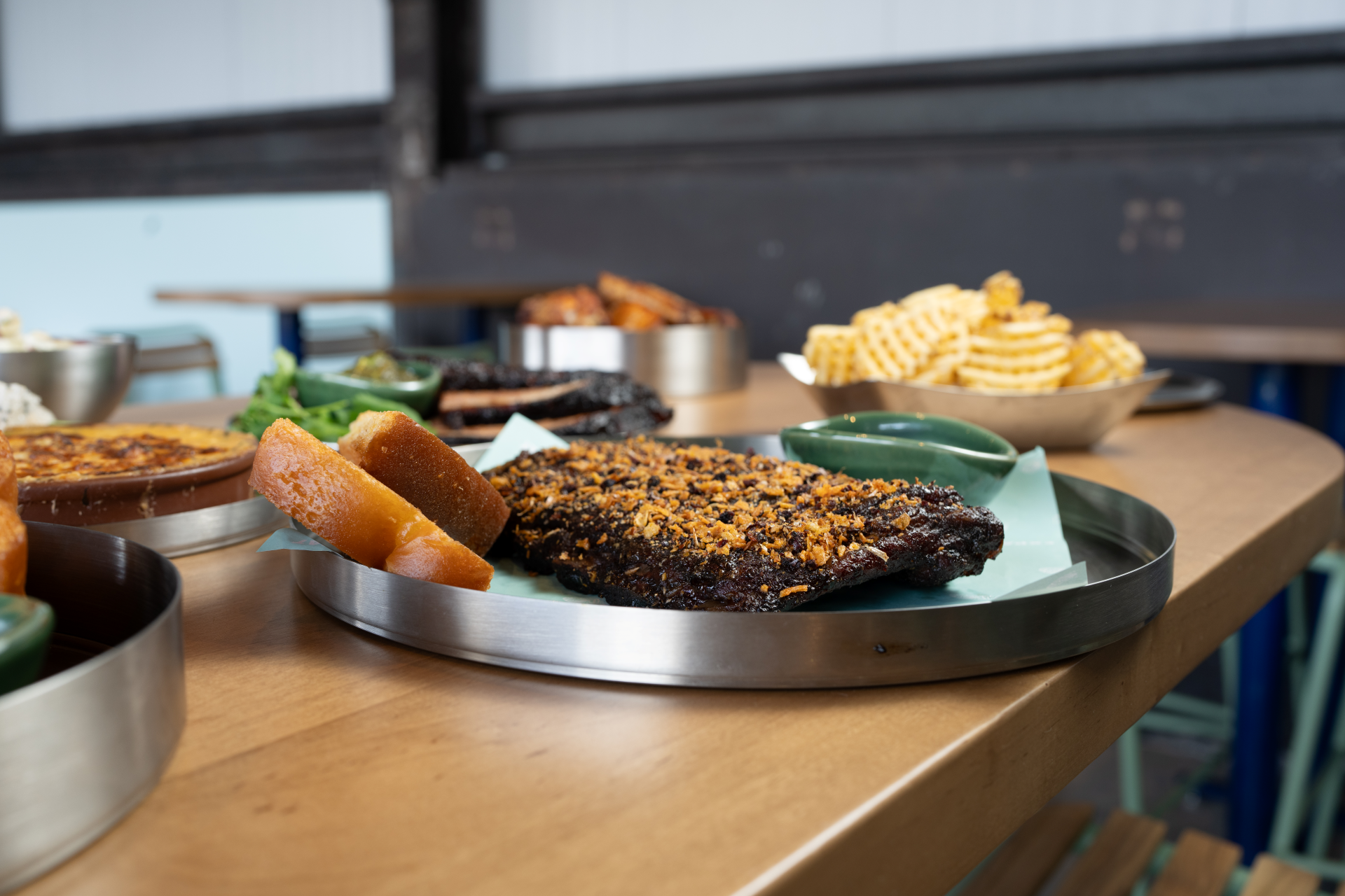 Expat BBQ brings the flavors of the world to City Foundry STL. Step into our space, where the warmth of a backyard barbecue meets the energy of global travel. The casual, inviting atmosphere is perfect for gathering with friends or diving into a plate of smoky, bold, and creative barbecue on your own.